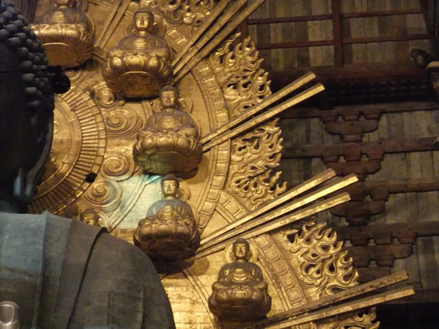 大仏背後の光背には、「化仏」と呼ばれる小さな仏様16体が並ぶ。