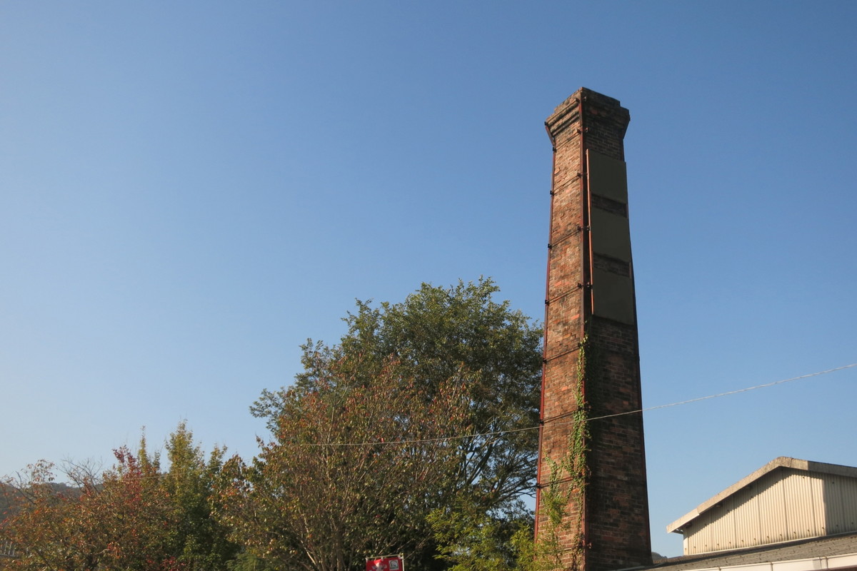 JR伊部駅のあたりには、煉瓦を積み上げた四角い煙突がたくさん立っている。