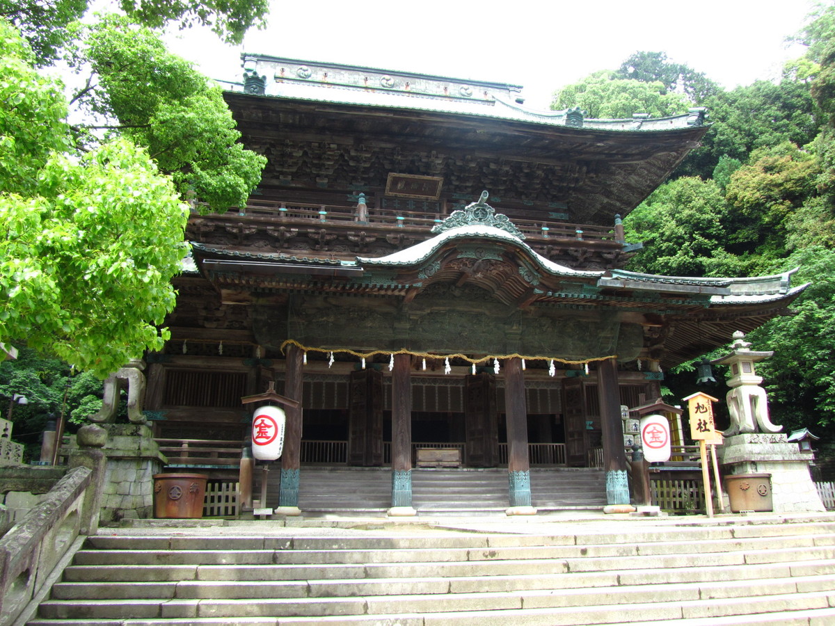 そこからしばらく進めば、境内を包み込むような森がいよいよ頭上に覆い被さり、賑やかだった門前町の雰囲気とは明らかに違った厳かな空気に満ちはじめます。やがて姿を現すのが壮大な旭社。旭社は1837年に建てられた二層入母屋造の建物で、銅瓦葺、さらに全体に多くの美しい彫刻がされていて、屋根裏・柱・扉など至る所に天保美術の粋を集めた装飾がなされる壮麗な建築です。完成まで40年を要したという、金刀比羅宮の中でもハイライトと言っても過言ではない、豪華で堂々とした佇まいが印象的です。