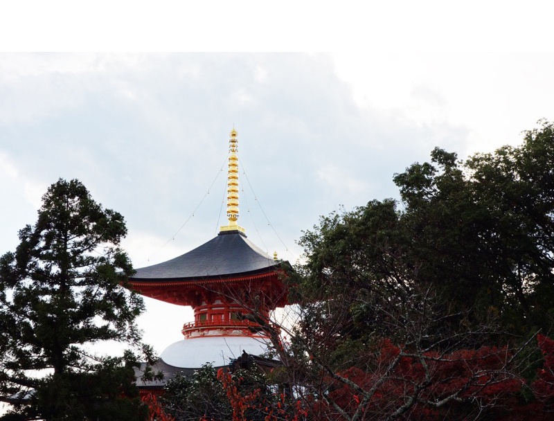本堂は階段を数十段昇ったところにあります。1603年に豊臣秀頼の名により再建されたものですが、手入れが綺麗に行き届いており、とても400年以上の建築には見えません。他にも朱塗りが鮮やかな大願堂や、珍しい青色の塗装が施された五重塔など、広い境内には立派な建築が集積。とても見どころの多い寺院です。
