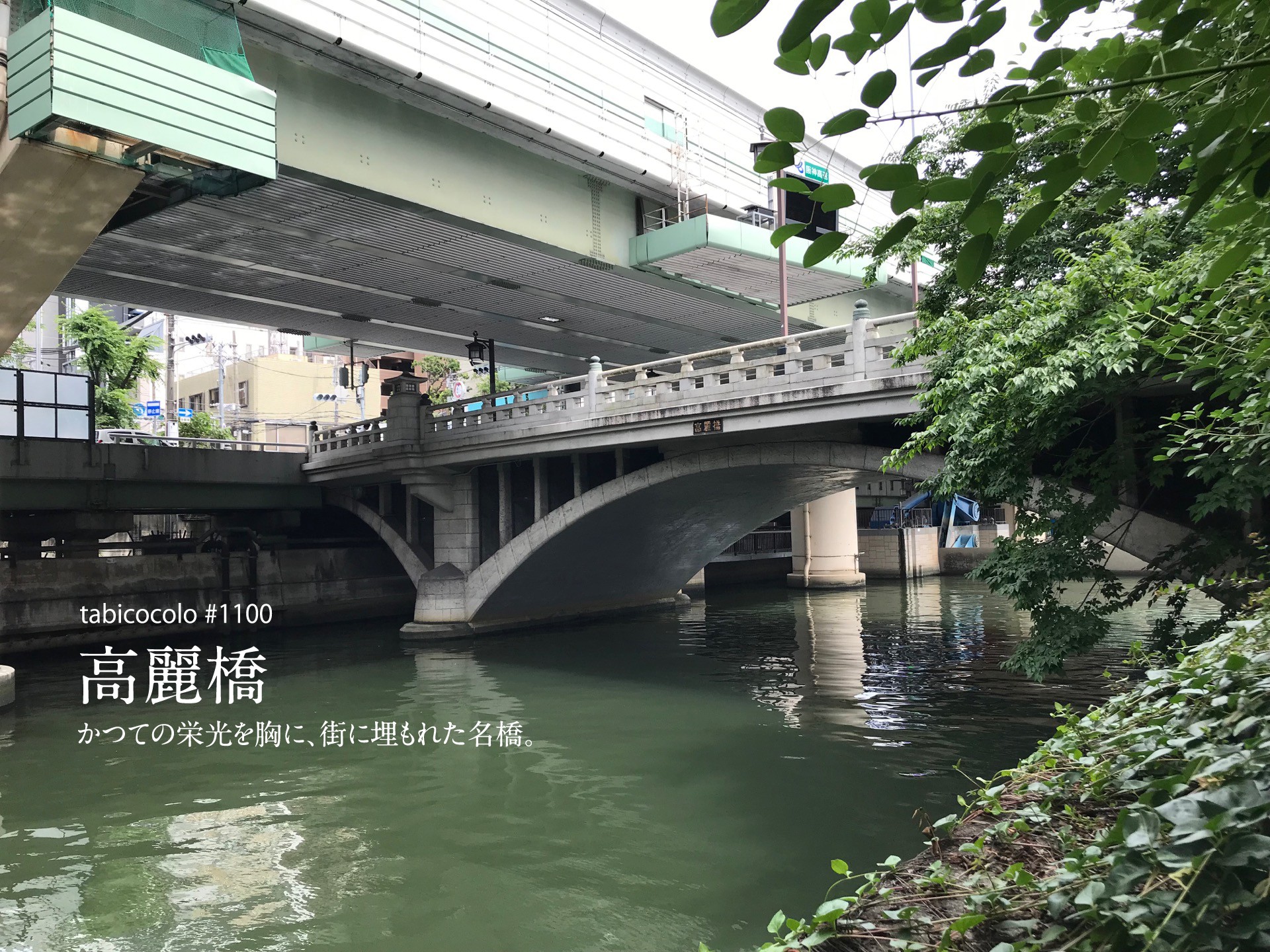 ビル群に隠れるように、さらに真上を阪神高速が走り、1日のほとんどを影と一緒に過ごす高麗橋。