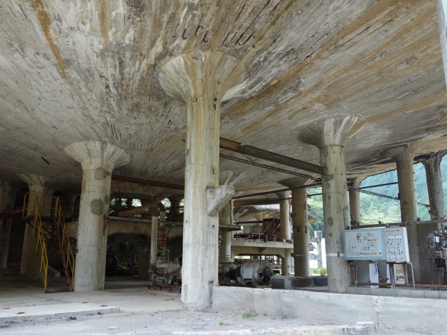 実はこの場所もかつては銀や銅を産出する鉱山でした。しかし長年の採掘により鉱石は枯渇し、1913年に閉山。その後新しい役目を担うことになり、明延鉱山の選鉱場として大いに栄えました。昼夜問わず作業が続いたそうで、暗い山間に煌々と灯る明かりは不夜城と異名をとったそうです。最盛期には3,000名が働いていたそうで、生野銀山とともにこのあたりの一大産業として町民の暮らしを支えました。