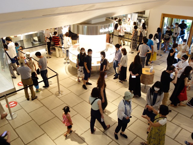 敷地のほとんどは緑に覆われています。メインの建物の庭も、その建物を抜けた中庭も。その中に佇む建物は、特徴的な形をした屋根もすべて緑化されています。まるで宮崎駿監督のアニメから取り出してきたような、独自の世界観を放っています。この建物でははCLUB HARIEのバームクーヘン専門の工場が併設されていて、その面白い製造工程を見学することが出来ますし、なんと言っても本当の焼き立てが頂けることが最高。吹き抜けの上にあるカフェでゆっくりいただくことも出来ます。また「たねや」のあらゆる商品を扱うショップも併設され、満足度大。ここにさえ来れば、たねやの全てを楽しむことが出来るのです。