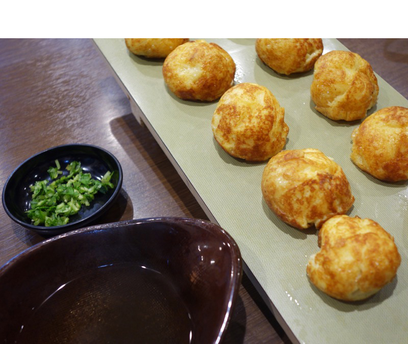 タコの明石焼と穴子の明石焼がセットになった珍しいメニュー「ハーフ」を注文することに。