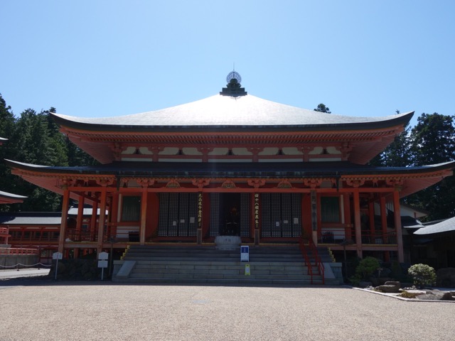 また東塔で最初に目にするのが大講堂。かなり大きく、鮮やかな朱塗りと巨大な瓦屋根が印象的です。1634年に比叡山の麓に建立されたものですが、旧大講堂が火災で消失してしまったため1964年に現在地へ移設されました。本尊は大日如来坐像。その左右には延暦寺が「日本仏教の母山」と呼ばれる所以となった各宗開祖の木像が並びます。日蓮、道元、栄西、法然、親鸞などなど、錚々たる高僧ばかりで、皆この延暦寺で修行の日々を過ごしたのです。延暦寺の偉大さがよく分かります。