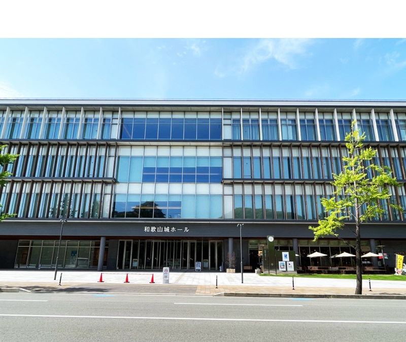 「人を集め、つなぎ、育てる施設づくり」をコンセプトに建築された和歌山城ホール。本格的な設備が整った954席の大ホールと395席の小ホール、300人を収容できる大会議室などで、コンサートや演劇、講演会や展示会などありとあらゆる催しが行われます。1階の展示室は外観側の扉が全て開放でき、建物の前にある多目的広場と一体利用もできます。