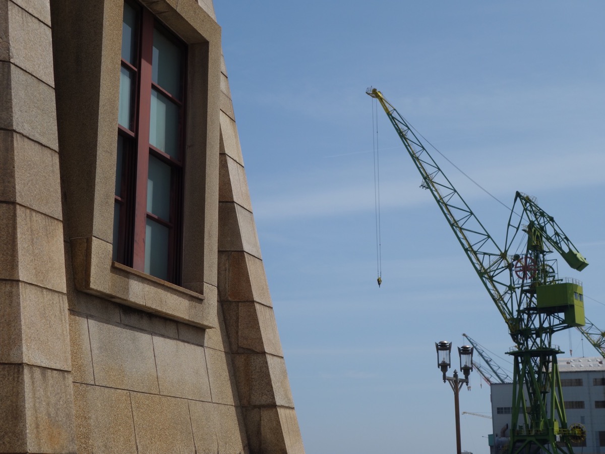 神戸港の空はいつも広く、突き抜けるような爽やかさがあります。そしてその空を背景に、旧神戸港信号所が「聳え立って」います。というのも高さは46.3mもあり、15階建のマンションくらいあるのです。ガイドブックで見るとそこまで高いものに見えないのですが、実際に近くで見てみると意外にもかなり大きな建築物なのです。
