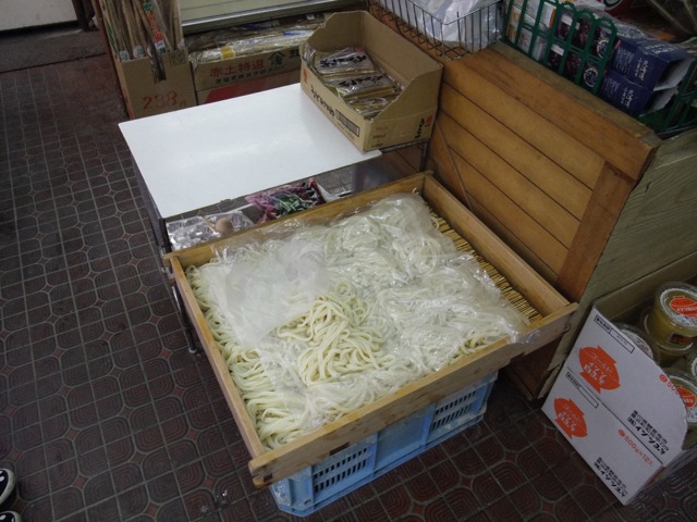 <食料品店の奥に潜む、看板のない讃岐うどん店。>