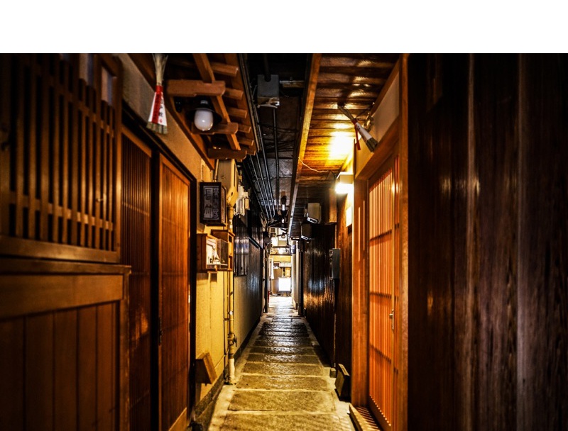 まず思うのは、なぜ「ぽんとちょう」なのか。古風な地名がひしめく京都なのに、その響きはどこか剽軽で親しみある町名です。それはこの路地ができた経緯に由来するようです。ここはかつて鴨川の一部で、江戸時代に埋め立てられ誕生した土地だそうです。鴨川に対して、それまで町だった先にできた町—。ポルトガル語で「先」や「岬」を表す「ポント(PONTO)」という言葉があり、それが語源と言われています。なるほどこの独特の響きは外来語だったのかと納得。この路地にはそんなハイカラな響きも似合います。