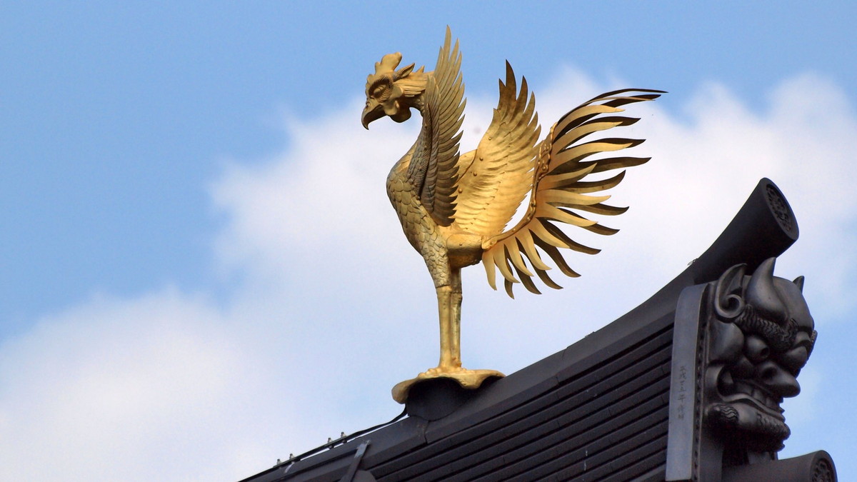 そして池に浮かぶ小さな島に建てられた鳳凰堂は、豪華絢爛そのもの。元々は阿弥陀如来像を納めることから阿弥陀堂と呼ばれていました。でも建物を正面から見ると、横に大きく翼を広げた鳳凰が飛び立つ姿のようであることから、江戸時代からは鳳凰堂と呼ばれるようになりました。屋根の上にも一対の鳳凰像が据えられています。