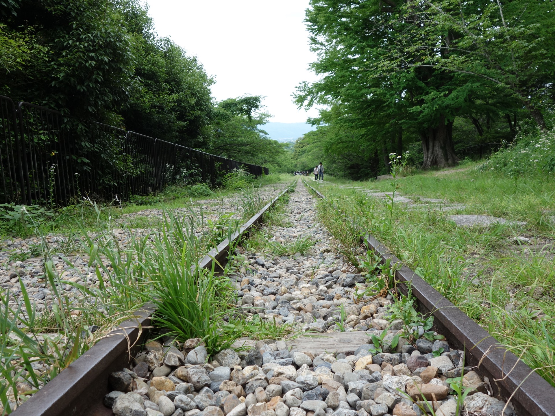 勾配が急すぎるため、台車が舟運の船を載せて運んだ「蹴上インクライン」。斜面に敷かれたレールを往復した。