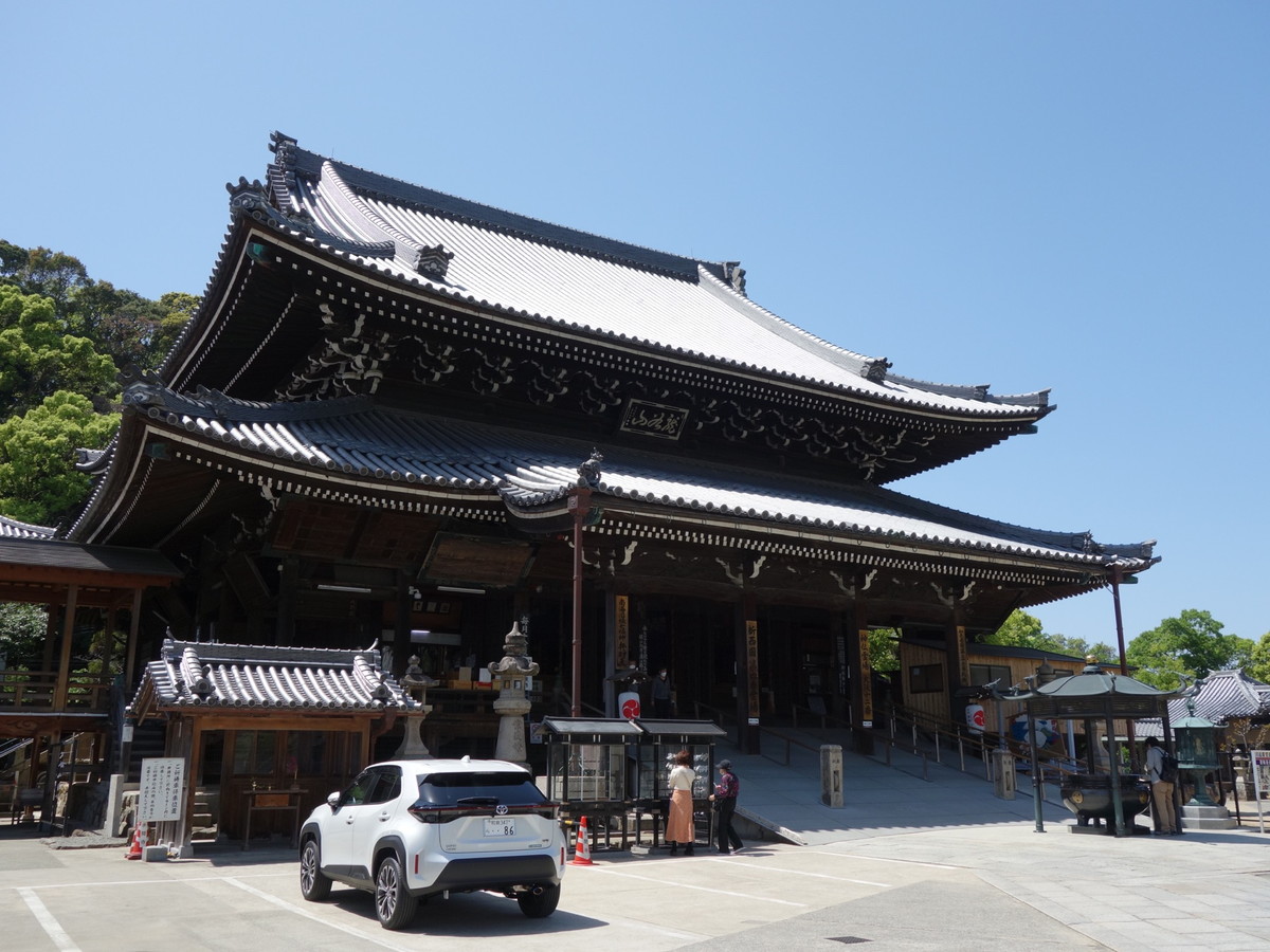 本堂はかなり大きな建物で、巨大な二重の瓦屋根が豪壮な雰囲気を醸し出しています。本尊は聖観世音菩薩ですが秘仏とされ、公開されることはないのだそう。