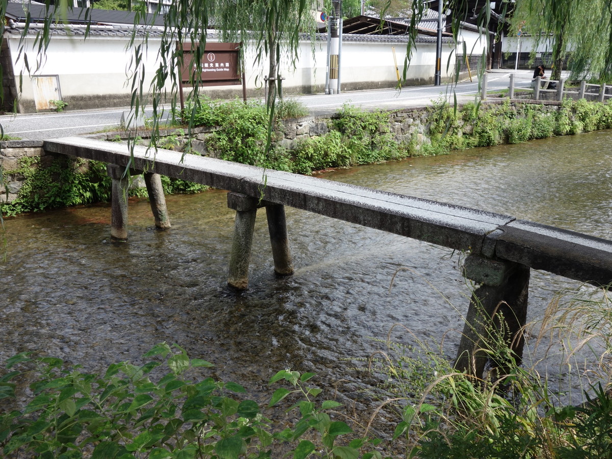 岡崎から祇園を抜けて流れ、鴨川へ注いでいる「白川」に架かる「一本橋」。柳が揺れる風流な景観の中でも象徴的な存在。
